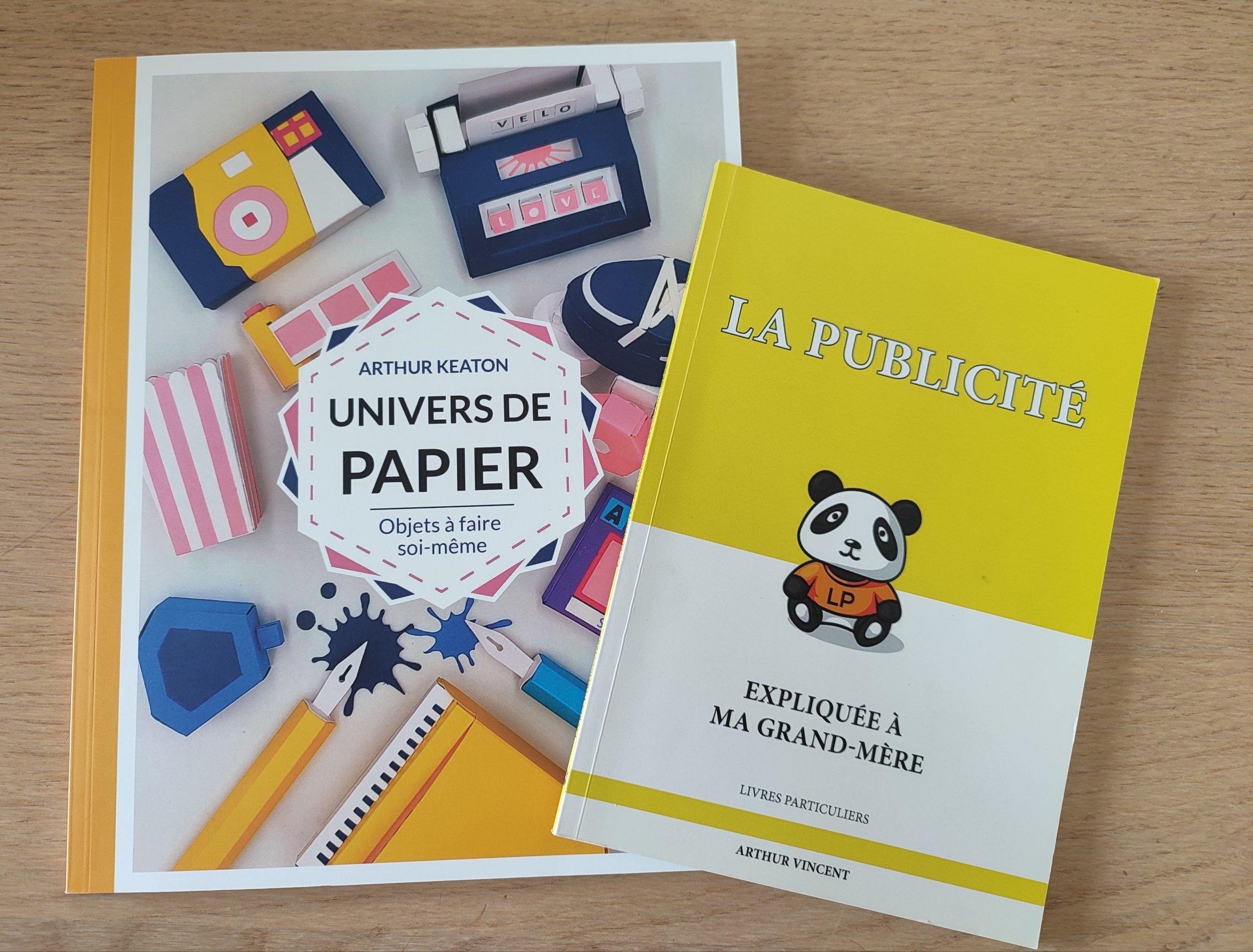 Pour l’auto-édition, j’ai déjà publié deux livres de cette manière. De part leurs contenus, c’est ce que j’appelle des livres techniques. Le premier intitulé ‘’la publicité expliqué à ma grand-mère’’ date de 2017, est un guide sur le monde de la publicité et qui fait suite à un stage de 6 mois dans une agence de publicité à Paris. En 2021, j’auto-édite mon livre créatif ‘’Univers de papier - objets à faire sois même’’ dans lequel j’ai inventé et créé 17 patrons d’objets à faire en papier. Si cela vous intéresse, j’ai retrouvé les couvertures de ces deux livres. Vous pourrez les voir à la fin de cet article. Si je me motive suffisamment, je vais tenter également de les rendre disponibles version PDF ou autre format numérique. Je viens également de remarquer qu’entre 2017 et 2021, il s’est passé 4 ans et que je commence l’écriture d’un nouveau livre en 2025. J’espère que par la suite les livres se suivront de plus près que tous les 4 ans.